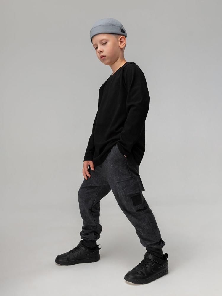Материал футер двухнитка Состав 92% хлопок 8% лайкра Брюки спортивные для детей дошкольного возраста. Брюки прямые свободные на притачном поясе с внутренней резинкой, на притачной манжете по низу изделия. Брюки с боковыми карманами. На левом боковом шве расположен накладной карман с клапаном.