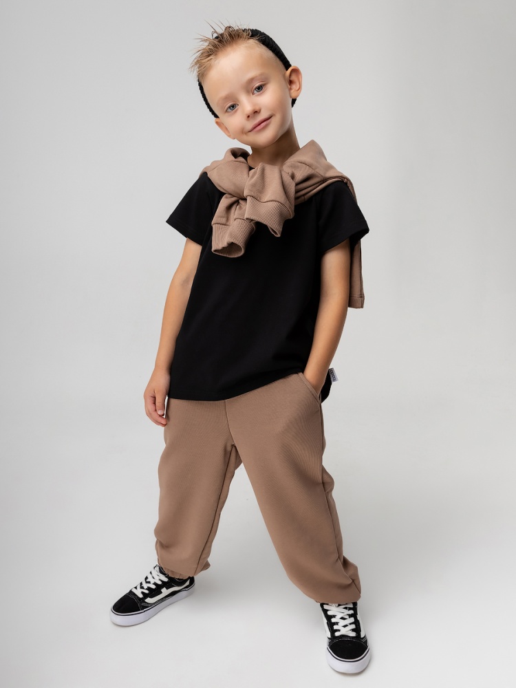 Материал футер трехнитка петля Состав 80% хлопок 20% лайкра Брюки спортивные для детей дошкольного возраста. Брюки прямые свободные на притачном поясе с внутренней резинкой. Низ брюк с цельнокроеной манжетой на резинке. Брюки с боковыми карманами.