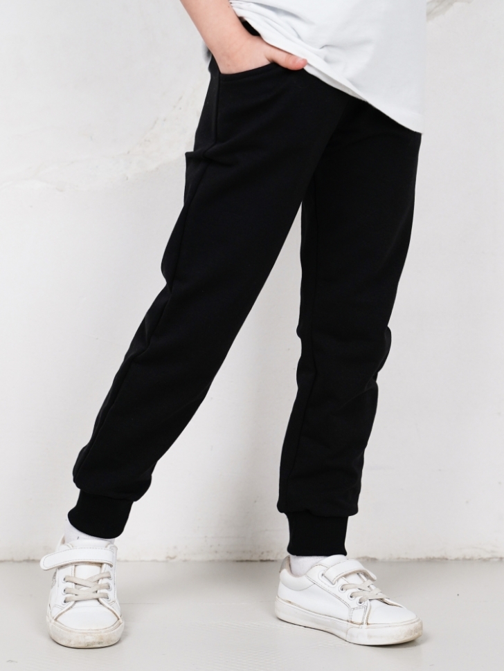 Трикотажные брюки для мальчиков и девочек. Притачной пояс на кулиске усилен эластичной тесьмой. Внутренние карманы в боковых швах с удобным для детской ладошки закругленным входом. Штаны на манжетах.
