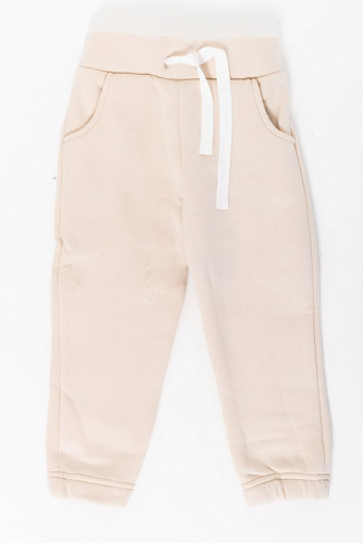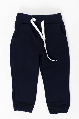 Тёплые, детские брюки выполнены из полотна с начёсом. По бокам расположены карманы, а для комфортной посадки в пояс вставлены шнур и резина. Низ брюк на резине.