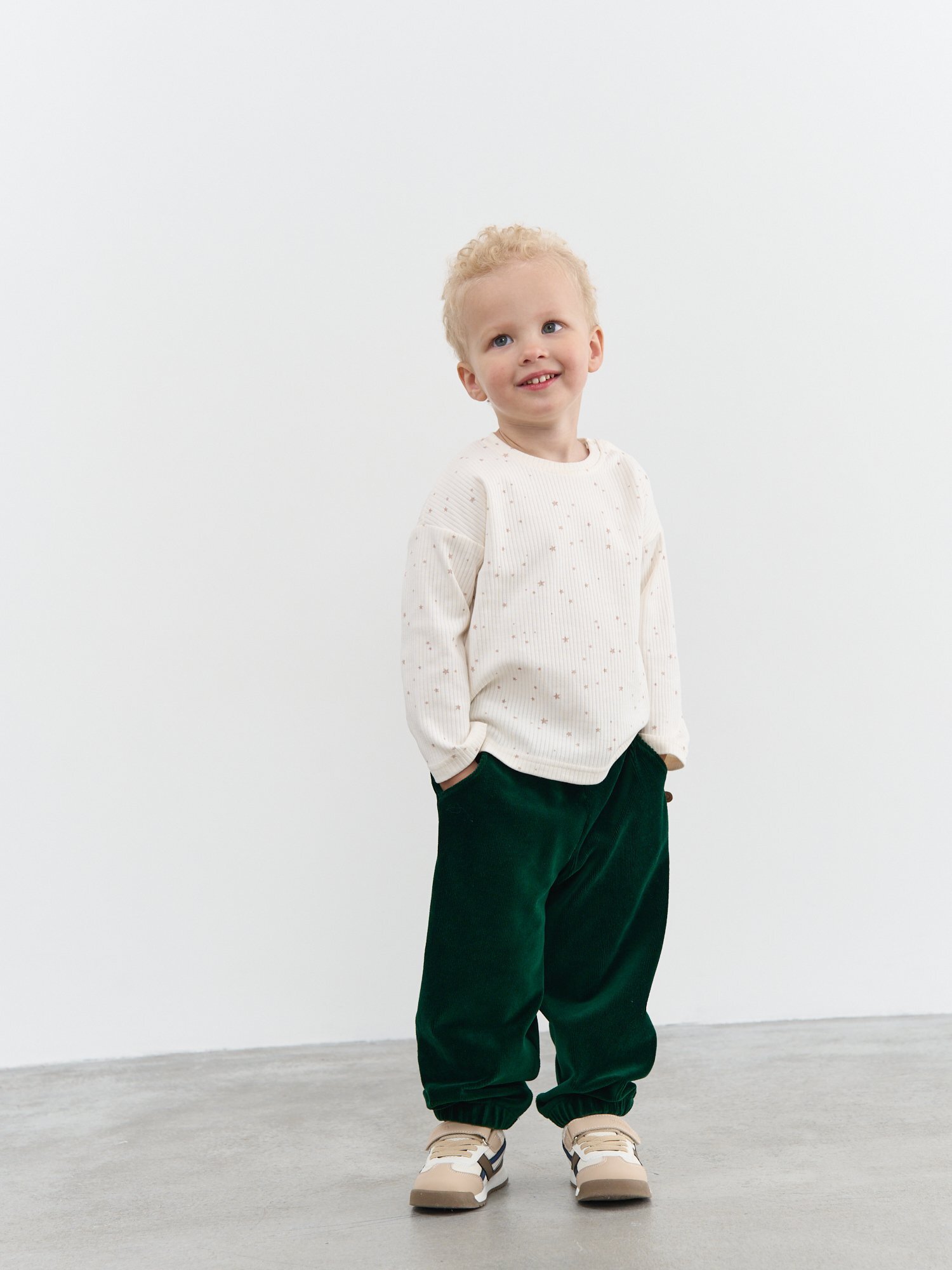 Брюки отлично сочетаются с лонгсливами, свитшотами и футбоками – универсальный вариант для детского сада, прогулок и семейных выходных.