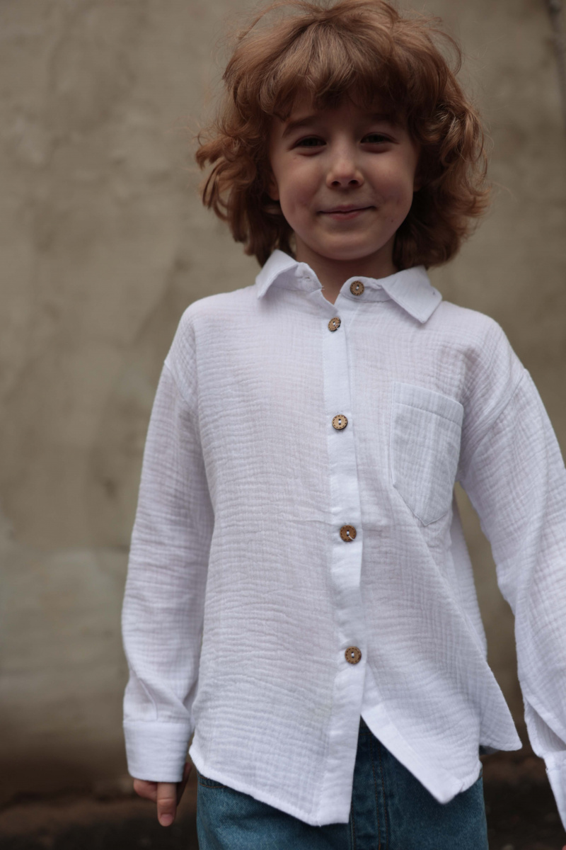 Легкая белая муслиновая рубашка для мальчика – идеальный выбор для жаркого лета!