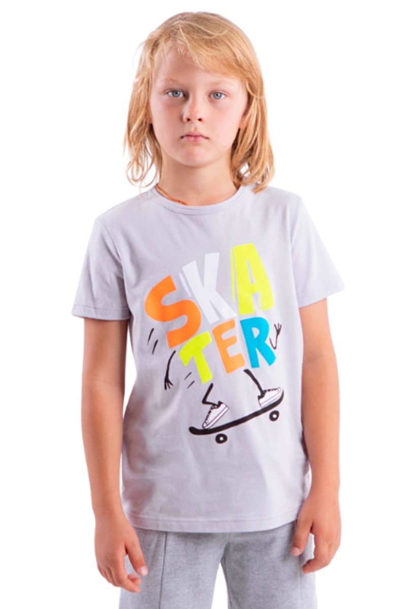 Хлопковая футболка для мальчика, светло-серый 103441 принт `скейт