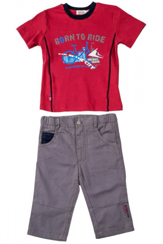 Хлопковый костюм Mini Hippy для мальчиков сочетает футболку и шорты. Удобный и стильный вариант для улицы и дома. Комфортную посадку можно отрегулировать внутренней резинкой в поясе. Длина шорт ниже колена, застежка гульфик, карманы спереди и сзади- накладные. Принт нанесен специальным образом и краской, поэтому не сотрется во время стирки.