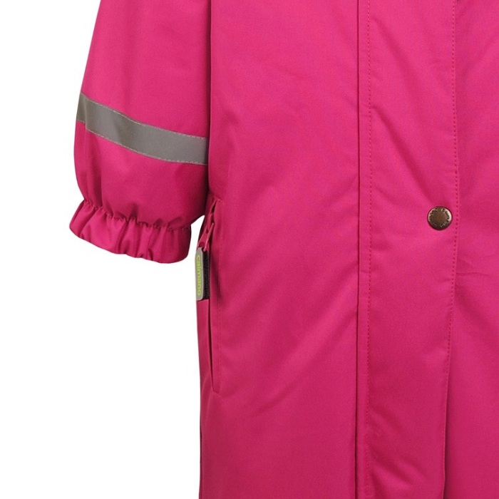 Демисезон Тёплый слитный комбинезон для девочки Caimano Lollo Из мембранной ткани для малышей возрастом от года до трех-четырех лет. Надежно защищает девочку во время ненастной погоды от сильного ветра, дождя или мокрого снега. Материал обладает «дышащим» свойством - это предотвращает накопления лишней влаги от тела, выводя испарение наружу, тем самым обеспечивает комфорт и сухость при большой активности во время прогулок.