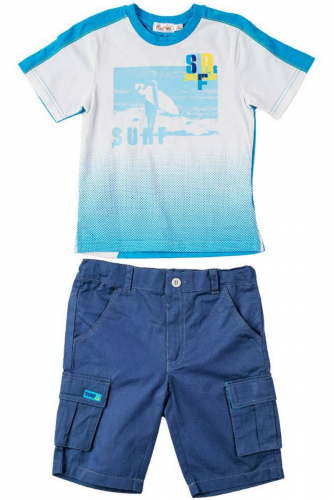 Яркий летний костюм Mini Hippy для мальчиков состоит из футболки и шорт. Отличный вариант для прогулок каждый день. Пояс со внутренней резинкой отрегулирует посадку, карманы спереди и сзади. Длина шорт ниже колена, застежка гульфик, карманы спереди и сзади- накладные, декоративные элементы. Принт нанесен специальным образом и краской, поэтому не сотрется во время стирки.