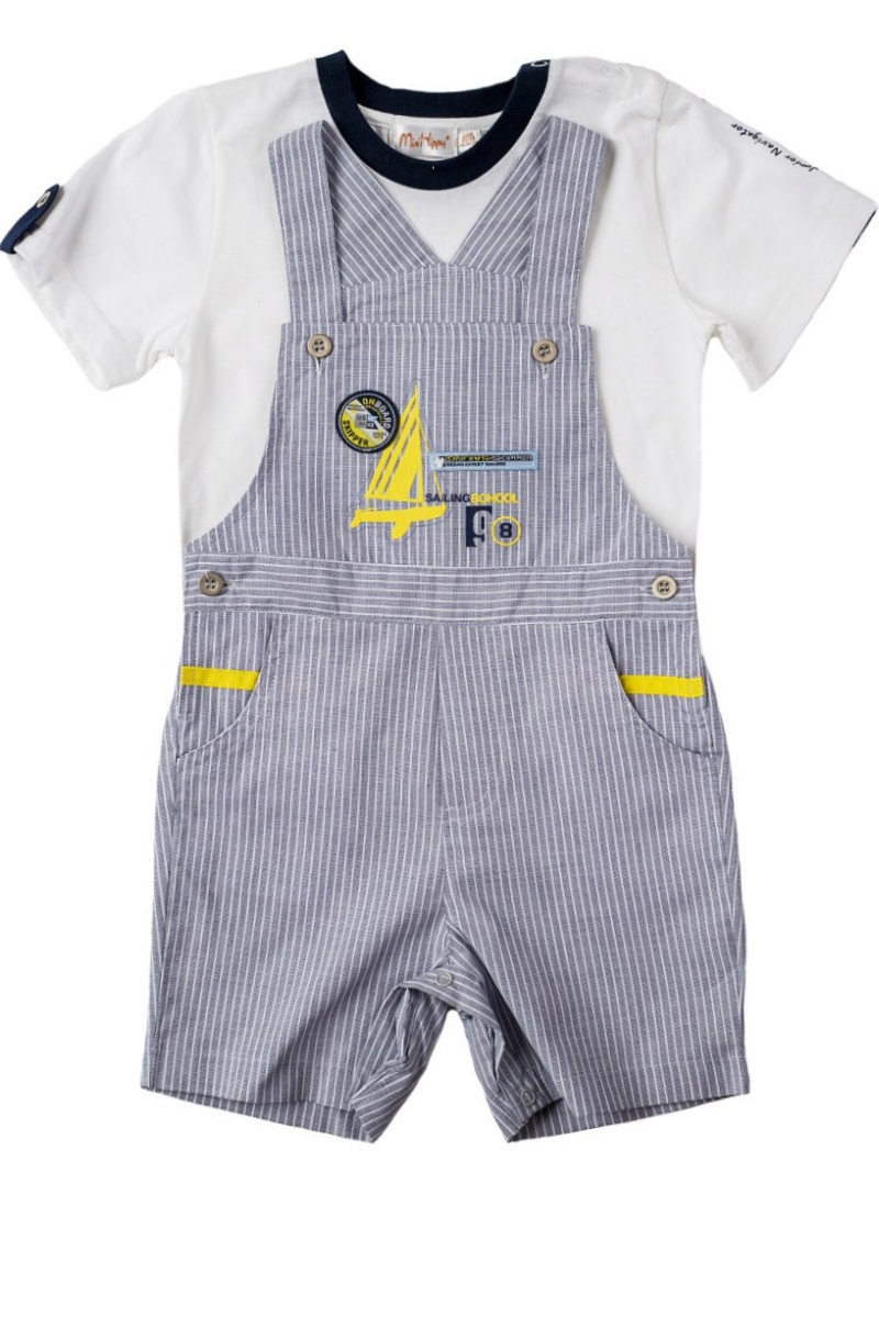 Хлопковый комплект Mini Hippy, комбинезон и футболка, идеален для малышей. Комбинезон застегивается на кнопочки по шаговым швам, что облегчает доступ, например к памперсу. Комбинезон с кармашками декорирован вышивкой. Тонкая хлопковая футболочка приятна телу, материал дышит, а застежка на кнопочки по плечу облегчает процесс одевания малыша.