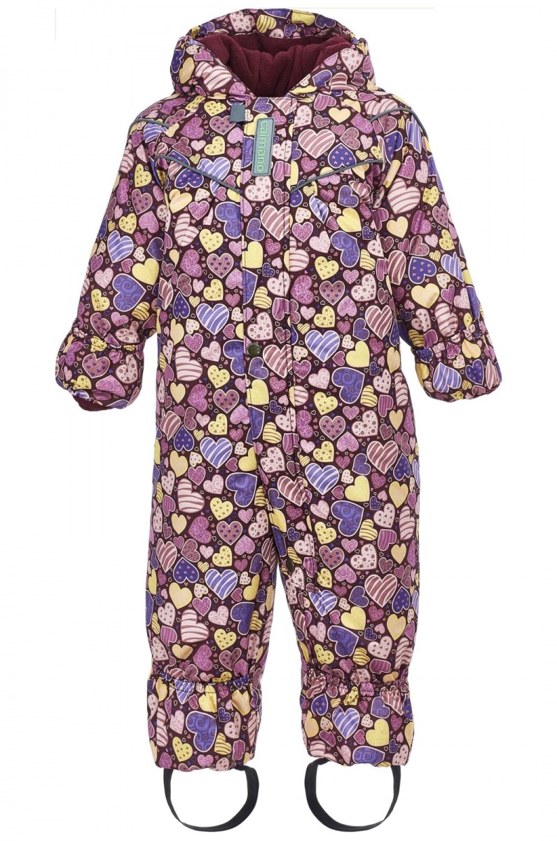 Зима Милый зимний комбинезон Caimano Clara из мембранной ткани для малышей. Романтичный принт в сердечки придает особенно нежный образ модели зимнего комбинезона для девочек. Надежную защиту от морозного ветра и снежных осадков обеспечит водо-/ветронепроницаемое свойство ткани, а «дышащее» свойство предотвращает накопления лишней влаги выводя испарение наружу, тем самым обеспечивает комфорт и сухость во время всей прогулки. Современный гипоаллергенный утеплитель нового поколения отлично сохраняет тепло, не деформируется во время стирок и быстро сохнет.