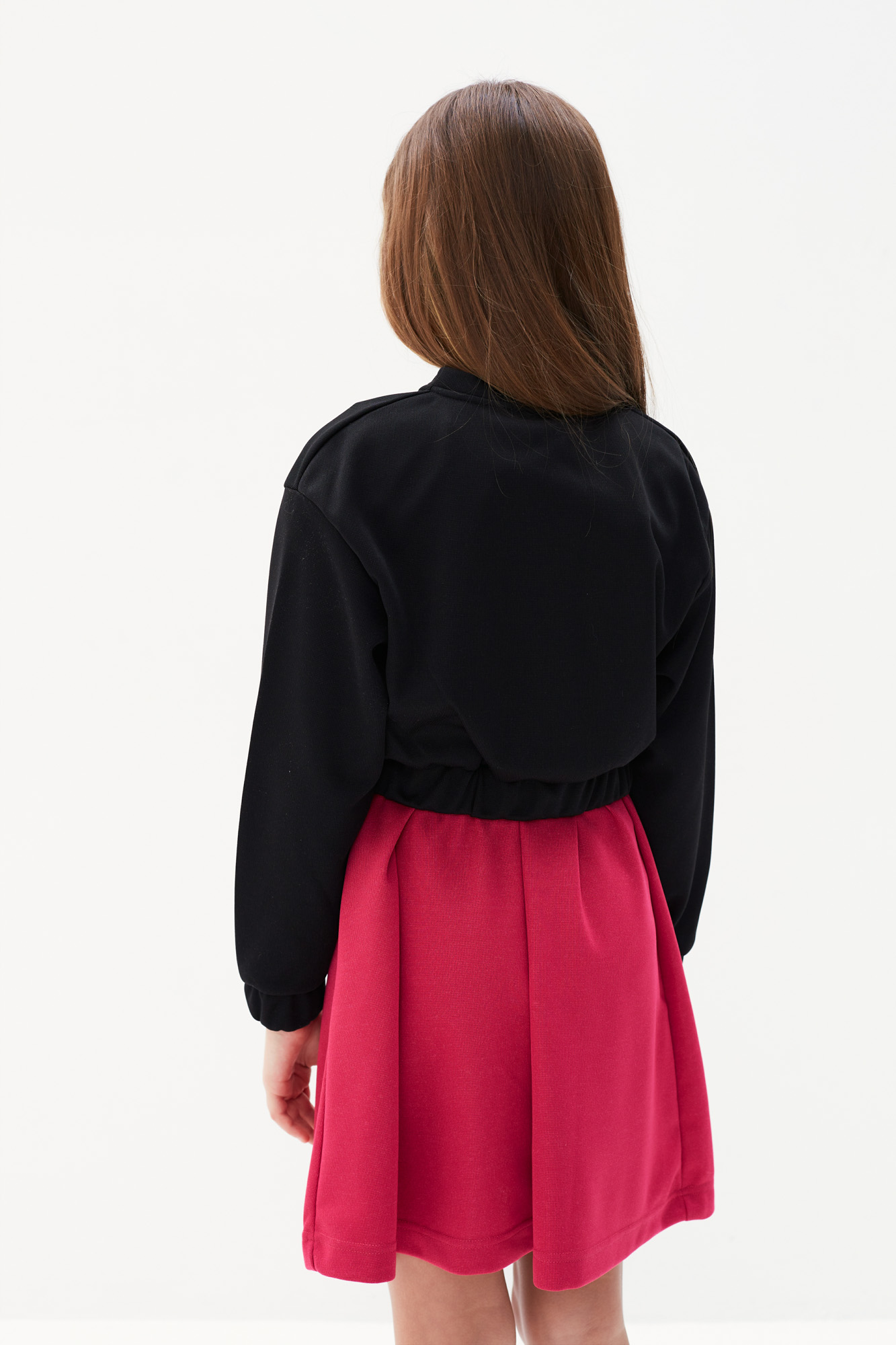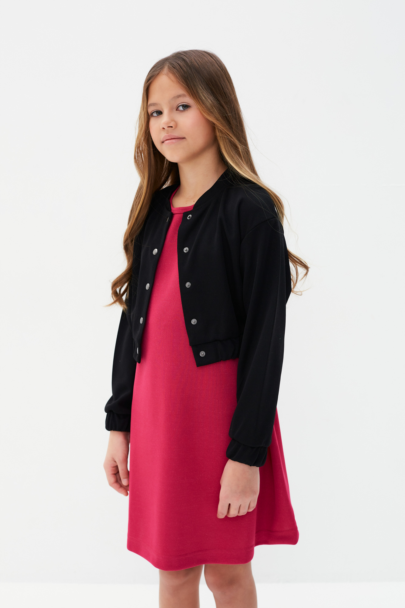 Стильный укороченный бомбер на кнопках из мягкого эластичного трикотажа.