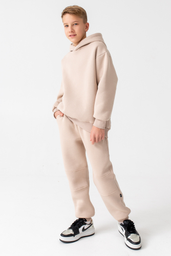 Состоит из укороченного худи на замке и широких брюк с накладным карманом на одной стороне.