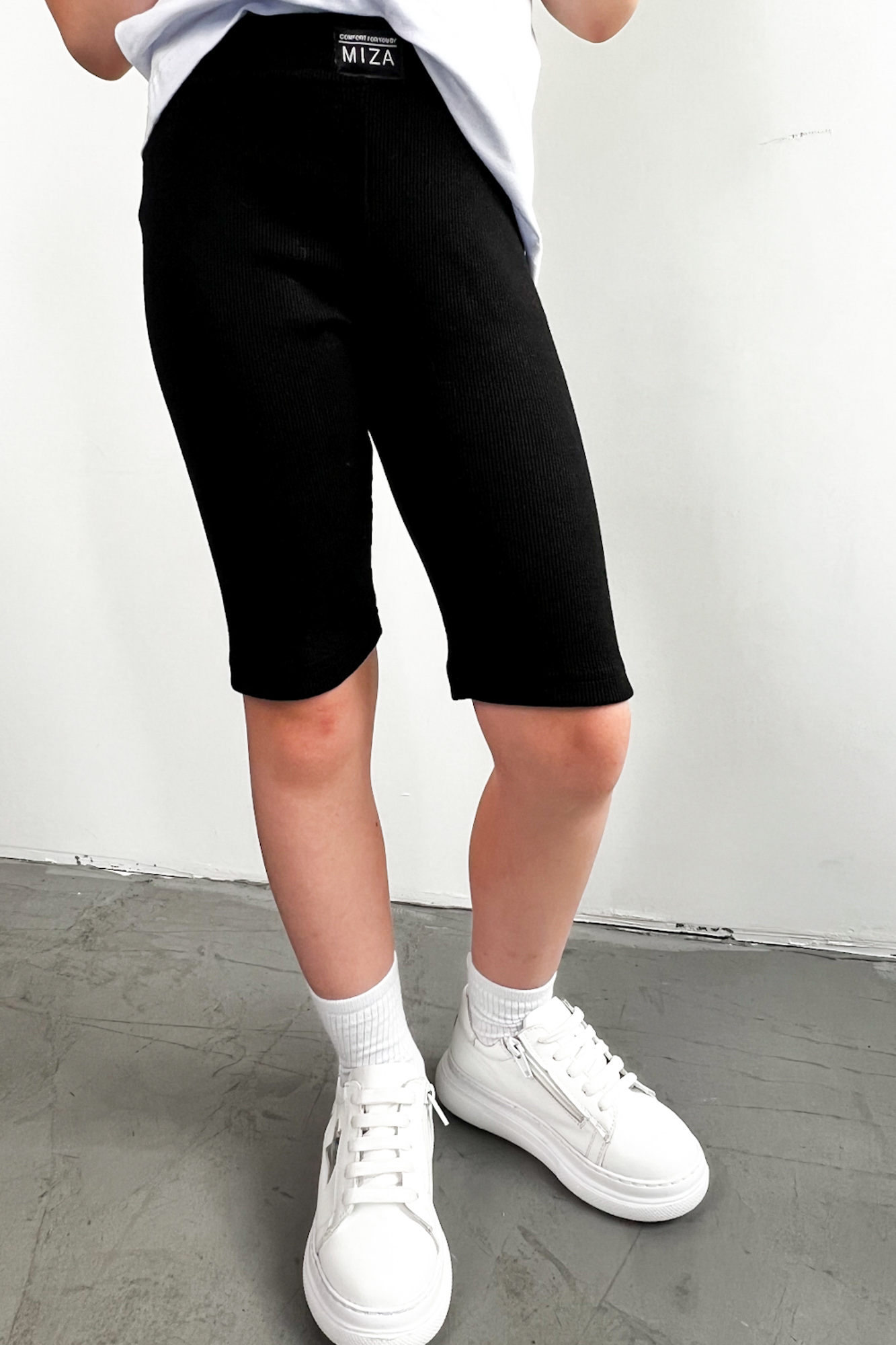Велосипедки из мягкого трикотажа средней плотности, в мелкий рубчик.