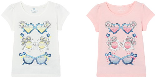 Кулирная гладь, 97% хлопок, 3% полиэстер / Футболка для девочки с короткими рукавами. Перед футболки декорирован принтом, с настроченными помпонами. 1;1;1;1;1;1