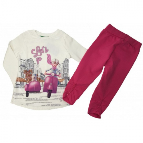 Удобная модель из мягкого трикотажа, красивый рисунок со стразами, для комфорта ребенка внутренняя часть рисунка отделана двойной нитью, лосины чуть пристроены к низу, понравится девочкам.