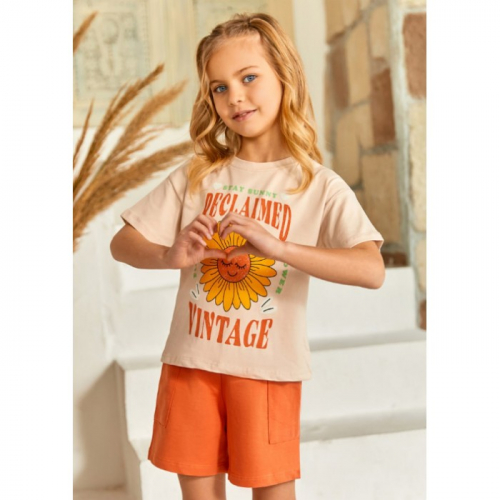 бежевый, оранжевый 95% хлопок, 5% эластан, шорты 95% полиэстер, 5% хлопок