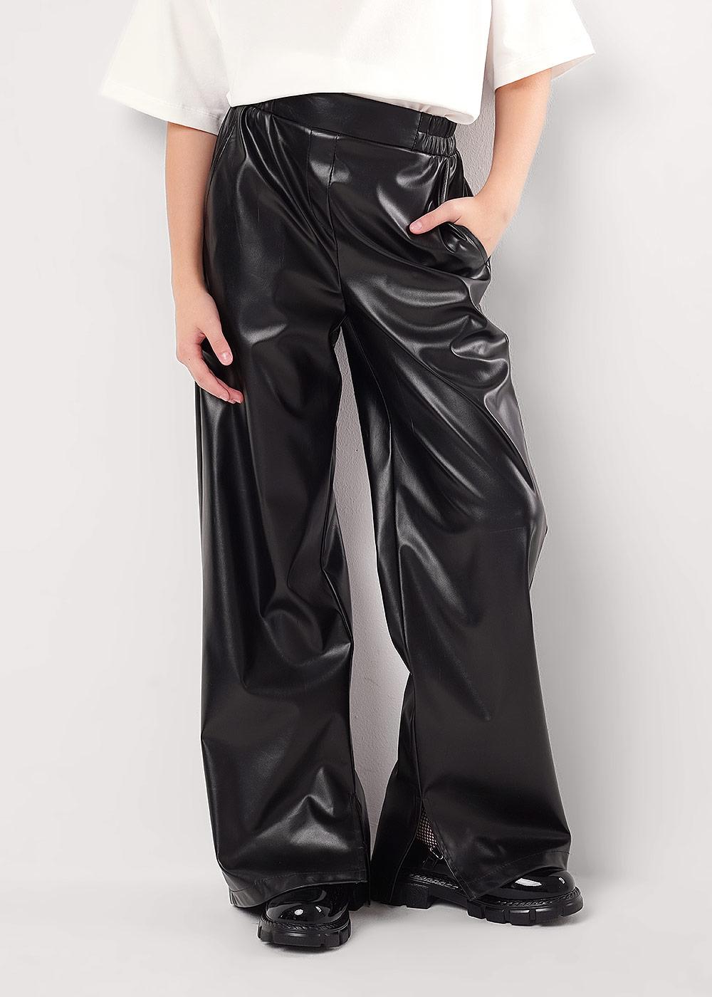 Стильные брюки из мягкой и приятной на ощупь экокожи прямого покроя - мастхэв гардероба. Комфортная и универсальная посадка, эластичный пояс. Сочетайте модель с любой футболкой, рубашкой или блузкой из новогодней коллекции.