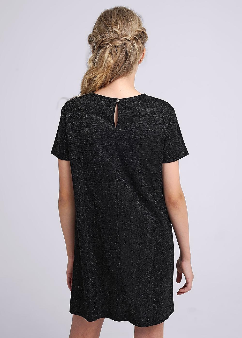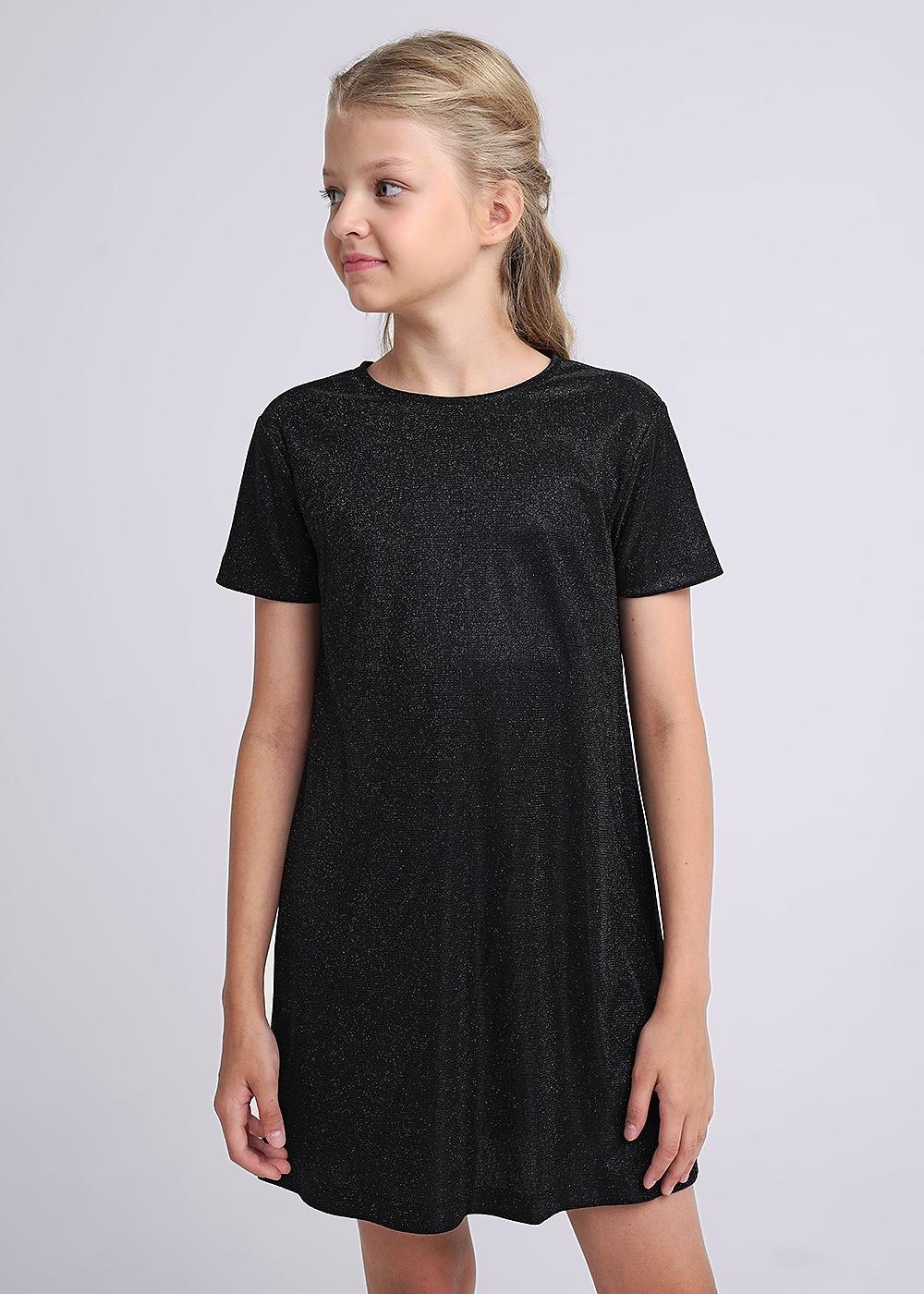Силуэтное черное платье создано для волшебных образов! Облегающий силуэт, короткий рукав, круглая горловина. Основа платья - мягкий трикотаж с люрексом.
