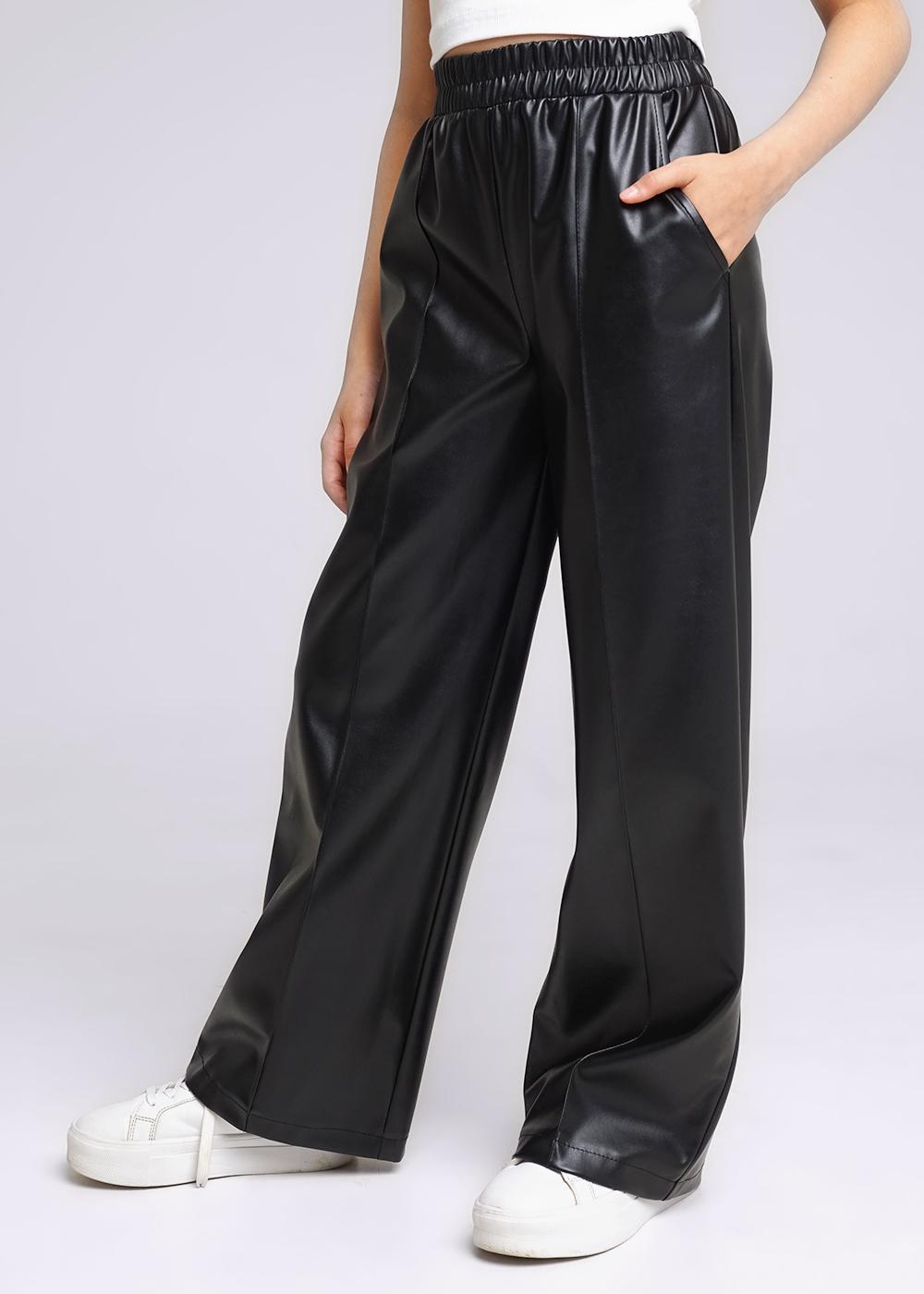 Трендовые брюки из экокожи прямого покроя - обязательный элемент гардероба. Эластичный пояс и боковые карманы. Это отличный вариант для любого случая: в школу, на официальное мероприятие или на вечеринку.