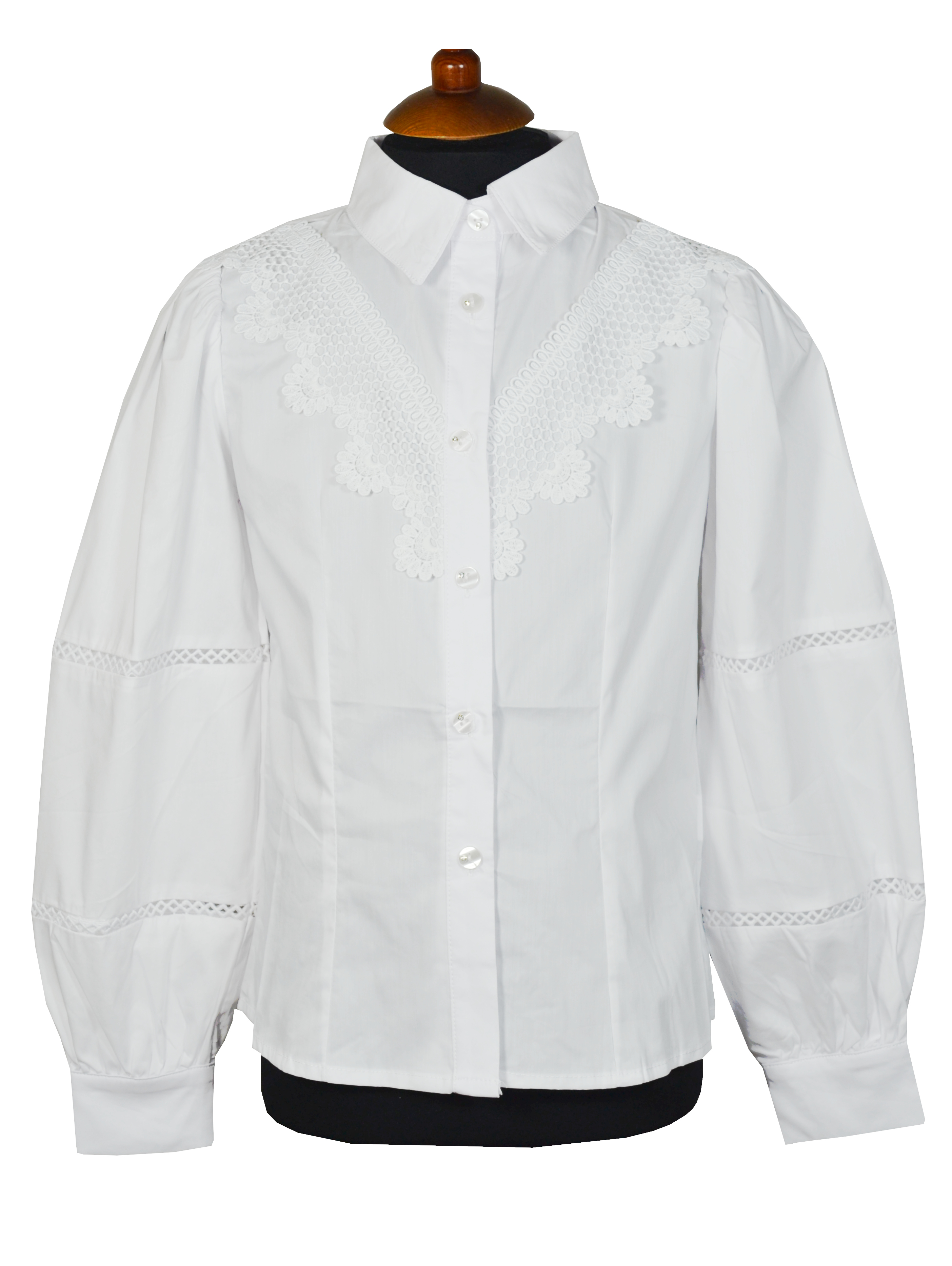 Блузка для девочки из хлопковой ткани.Застежка на пуговицы. Дополнена кружевом.