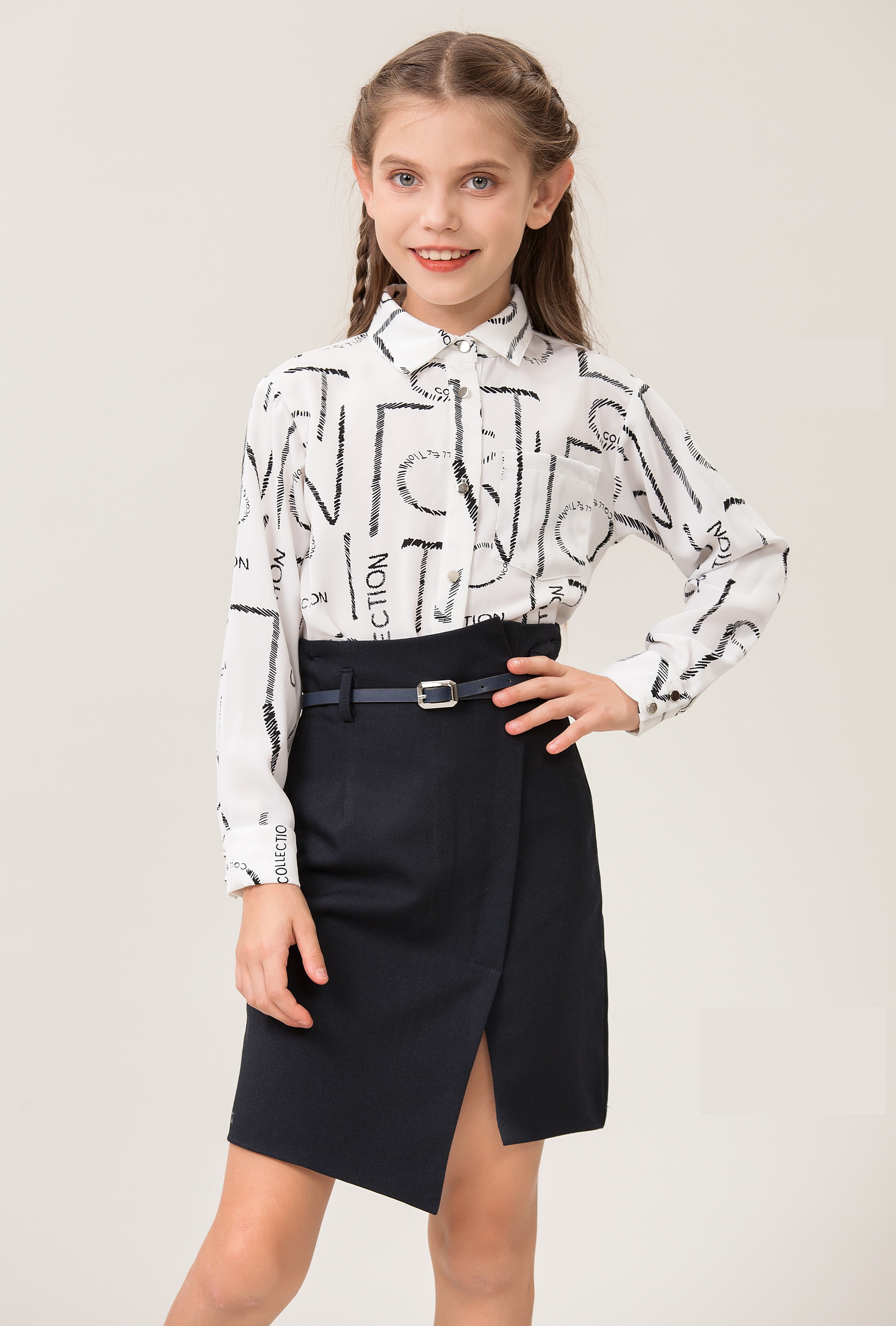 Модная рубашка для девочки из шифоновой ткани.  Застежка на пуговицы.   Можно носить как с брюками на выпуск, так и под заправку.
