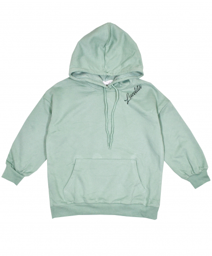Теплое худи для девочки. Ткань утепленная с изнанки небольшой начес. Крой свободный по типу Oversize. Капюшон реглируется шнурком. Накладной карман