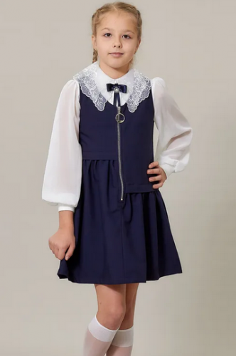 Школьный сарафан для девочки. Ткань&..показатьnbsp; плотная, костюмная, хорошо держит форму. Талия собрана на резинку.  Лямки спадать не будут, т.к. по спинке они зафиксированы. Длина чуть выше колена.  Качество изделия очень высокое.