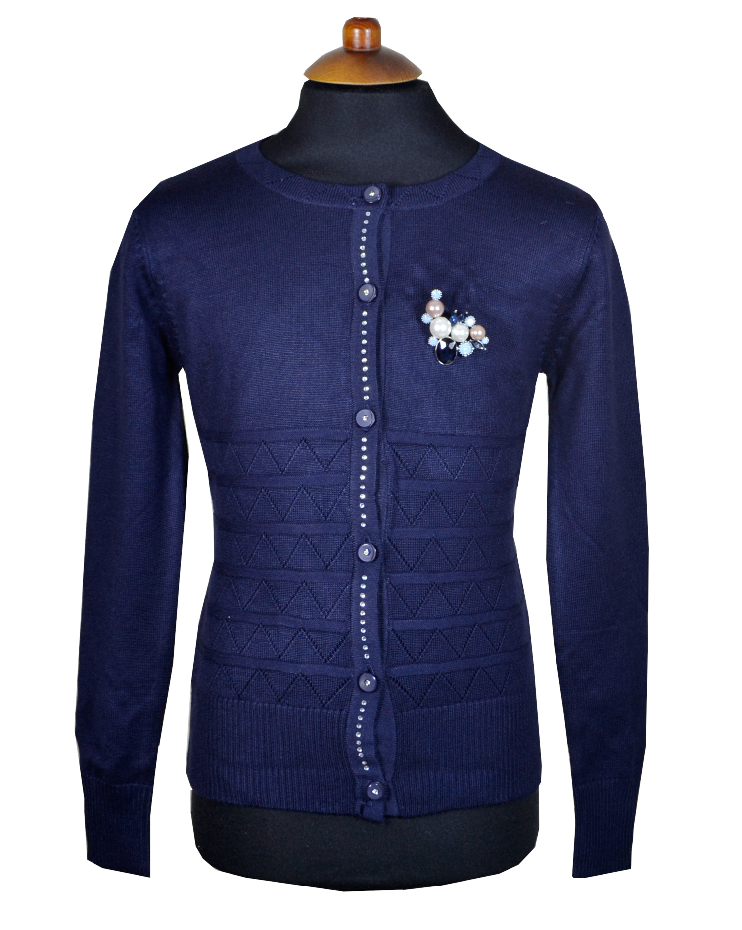 Классический жакет на пуговицах, средней плотности. Брошь в комплекте, можно отстегнуть.  Спинка без особенностей. Дополнен стразами  Жакет очень мягкий и приятный на ощупь.