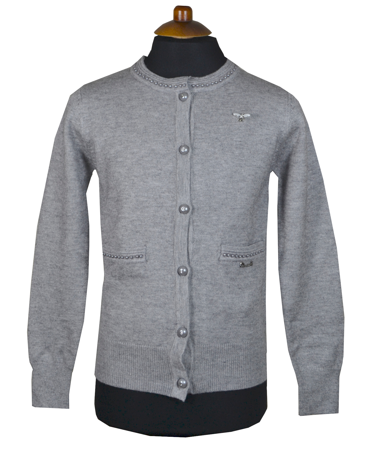Классический жакет на пуговицах, средней плотности. Брошь в комплекте. Карманы прорезные, функциональные.  Спинка без особенностей. Дополнен бусинами.  Жакет очень мягкий и приятный на ощупь.