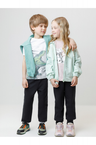 Трикотажные брюки из петельчатого футера. Эластичный пояс на резинке регулируется по ширине с помощью шнурка, по бокам два удобных кармана, внизу эластичные манжеты.