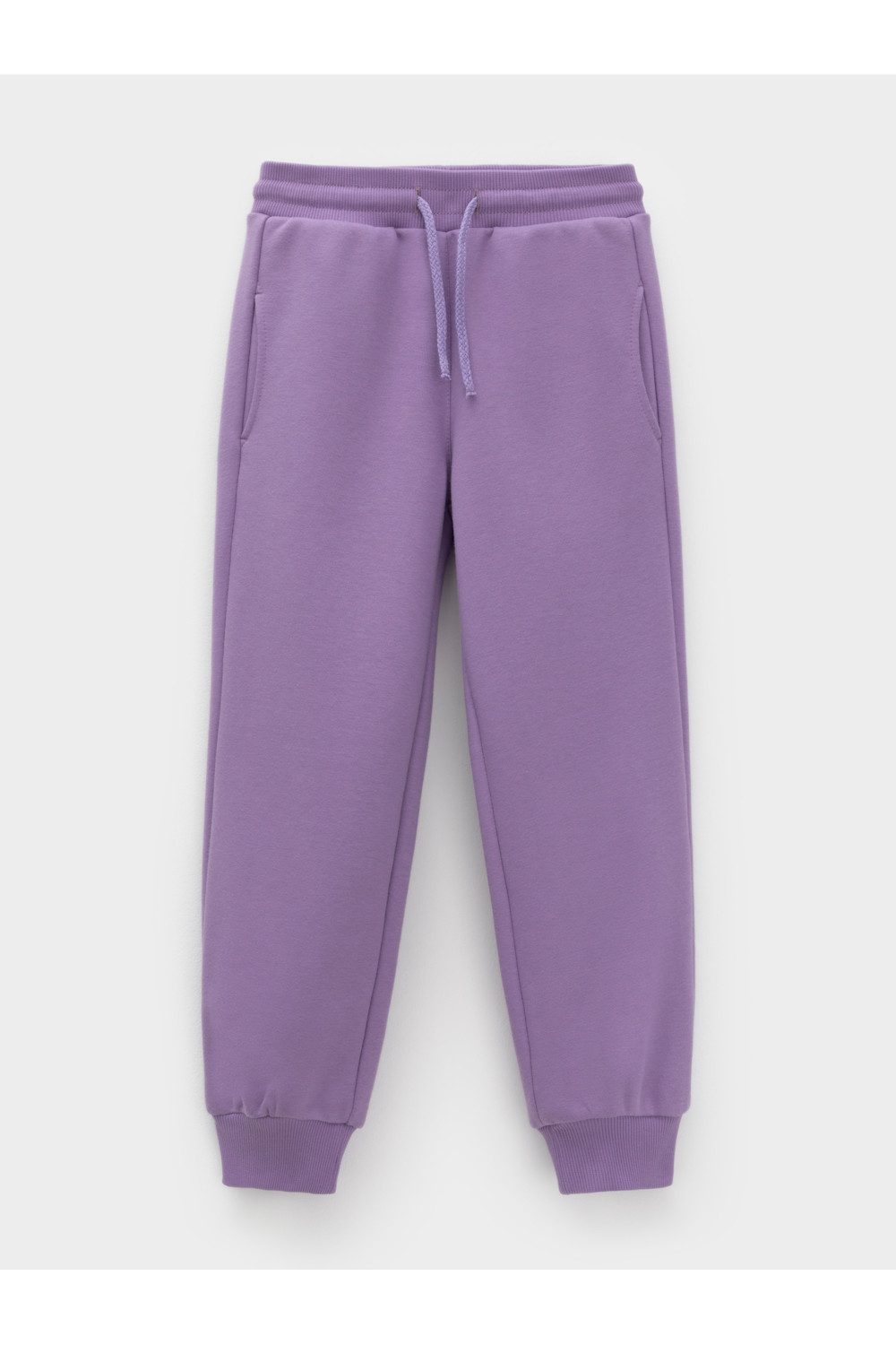 Брюки однотонные для девочки. Изготовлены из мягкого петельчатого футера трёхнитки диагональ. В составе 80% натурального хлопка и 20% полиэстера, при этом полиэстер ввязан внутрь по особой технологии и не соприкасается с кожей. Модель с эластичным поясом на резинке. Низ на манжетах. Изделие сохраняет цвет и форму после многократных стирок. Все трикотажные полотна производятся в соответствии с нормами швейцарского сертификата ЭкоТекс.