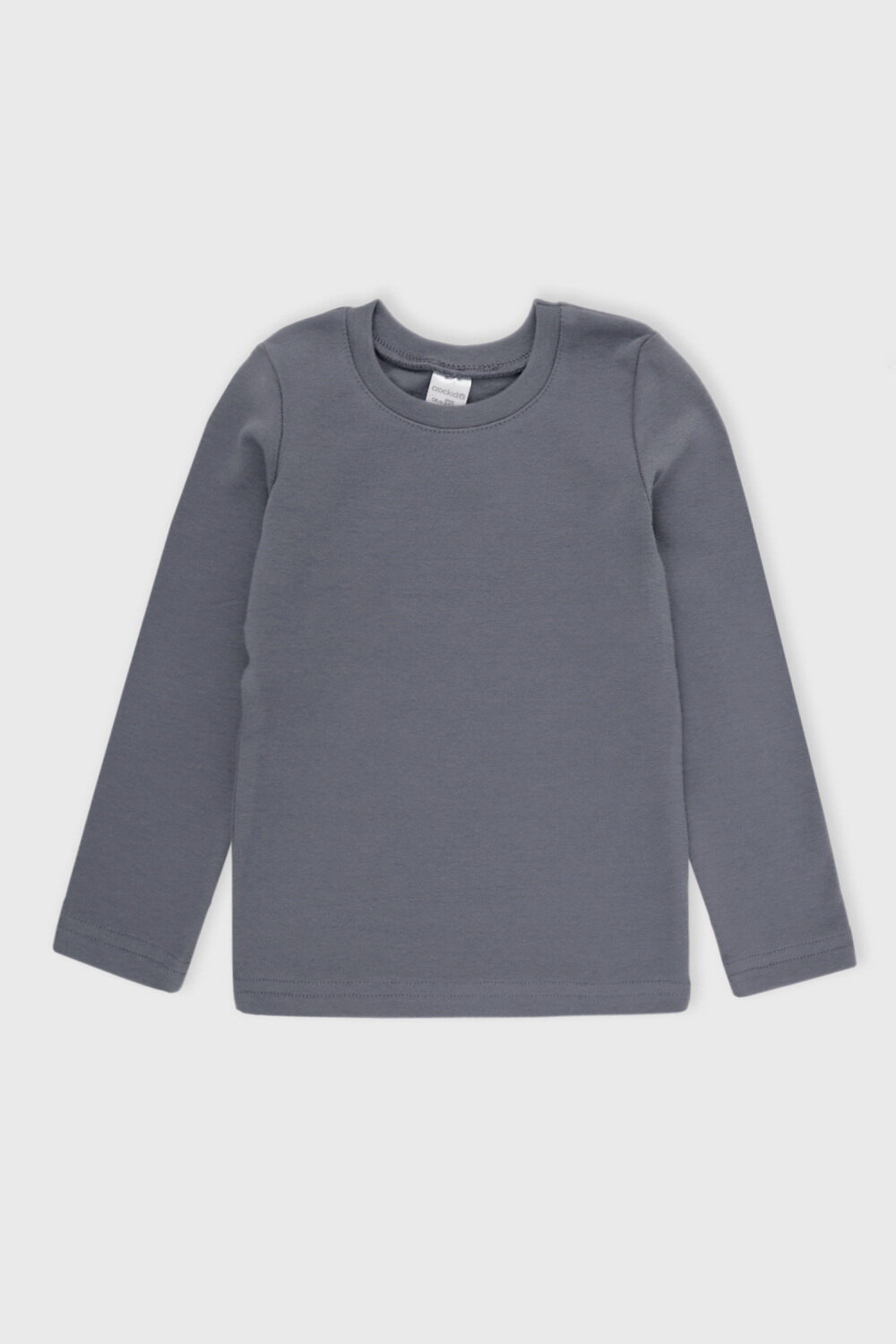 Однотонный джемпер с длинными рукавами. Сшит из высококачественной эластичной рибаны с начёсом. Эластан в составе позволяет изделию быть более эластичным и дольше сохранять опрятный внешний вид. Обтачка горловины выполнена из основного материала.