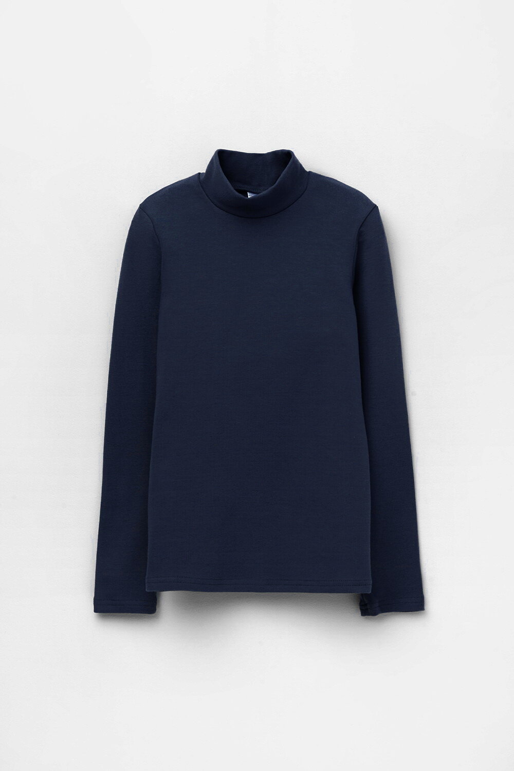 Однотонная водолазка с высоким воротником-стойкой и длинными рукавами. Выполнена из высококачественной эластичной рибаны с начёсом. Эластан в составе позволяет изделию быть более эластичным и дольше сохранять форму. Воротник защищает горло от прохладного воздуха.