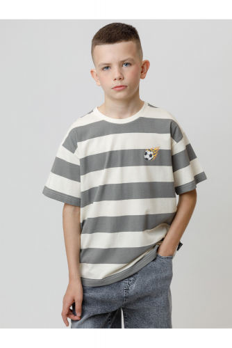 Футболка для мальчика из гладкого трикотажа, произведённого из высококачественного натурального хлопка. Для удобства одевания имеется застёжка на кнопки в размерах 92 и 98. Оригинальный принт выполнен из стойких текстильных гипоаллергенных красителей. Изделие сохраняет цвет и форму после многократных стирок. Все трикотажные полотна производятся в соответствии с нормами швейцарского сертификата ЭкоТекс.
