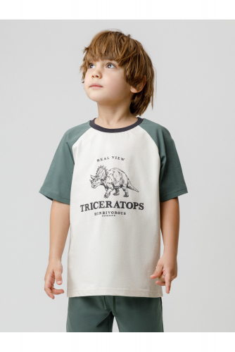 Футболка для мальчика из гладкого трикотажа, произведённого из высококачественного натурального хлопка. Оригинальный принт выполнен из стойких текстильных гипоаллергенных красителей. Изделие сохраняет цвет и форму после многократных стирок. Все трикотажные полотна производятся в соответствии с нормами швейцарского сертификата ЭкоТекс.