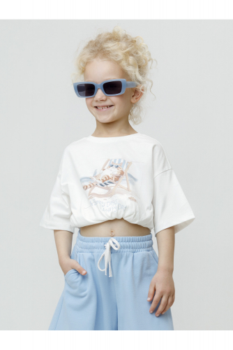 Футболка для девочки из высококачественного трикотажного полотна. Оригинальный принт выполнен из стойких текстильных гипоаллергенных красителей. Изделие сохраняет цвет и форму после многократных стирок. Все трикотажные полотна производятся в соответствии с нормами швейцарского сертификата ЭкоТекс.
