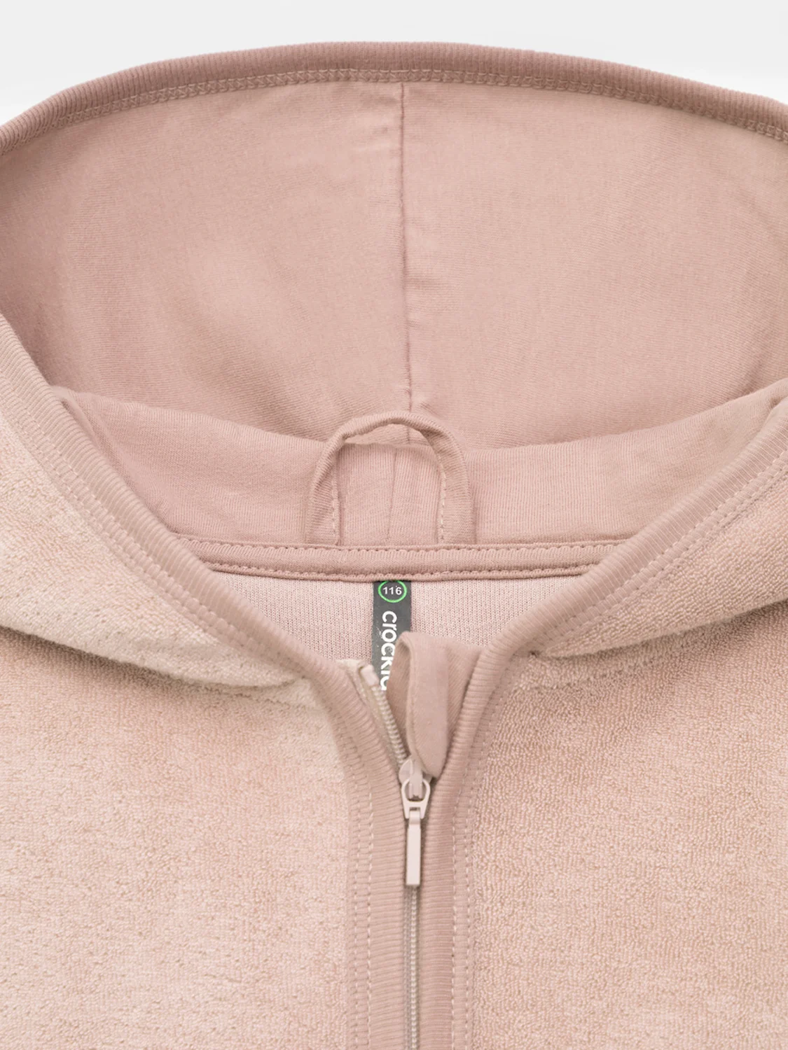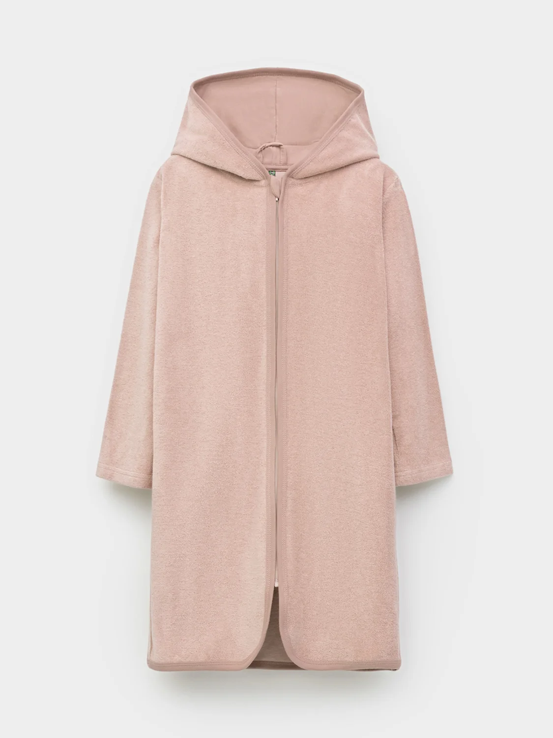 Однотонный махровый халат для девочки на молнии без начёса. Капюшон с мягким подкладом. В боковых швах удобные карманы. Рукава и края изделия обработаны кантом.