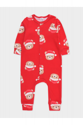 Трикотажный комбинезон из эластичного гладкого полотна интерлок. Материал произведён из высококачественного натурального хлопка. Комбинезон застёгивается спереди на кнопки. На рукавах и по низу изделия мягкие манжеты. Отлично подойдёт для создания праздничных образов или в качестве подарка малышу на Новый год и Рождество. Оригинальная набивка и принт выполнены из стойких текстильных гипоаллергенных красителей. Изделие сохраняет цвет и форму после многократных стирок. Все трикотажные полотна производятся в соответствии с нормами швейцарского сертификата ЭкоТекс.