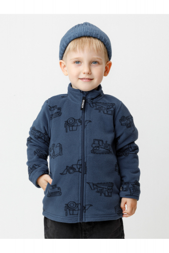 Флисовая куртка для мальчика. У изделия высокий воротник и застёжка на молнию с мягкой защитой шеи и подбородка. По бокам два кармана. Оригинальная набивка выполнена из стойких гипоаллергенных текстильных красителей. Куртка сохраняет цвет и форму после многократных стирок.
