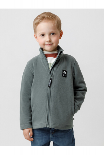Флисовая куртка для мальчика. У изделия высокий воротник и застёжка на молнию с мягкой защитой шеи и подбородка. По бокам два кармана. Куртка сохраняет цвет и форму после многократных стирок.