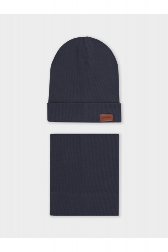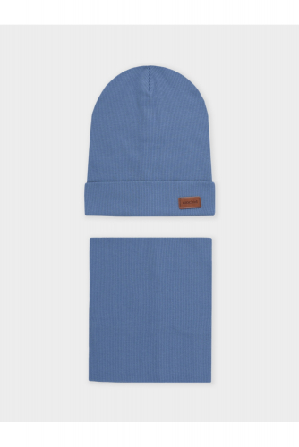 Комплект для мальчика: шапка и снуд. Изготовлен из хлопкового трикотажа в рубчик с добавлением спандекса. Комфортно прилегает, обеспечивая защиту от холода и хороший теплообмен. Изделия хорошо тянутся, после многократных стирок сохраняют цвет и форму.