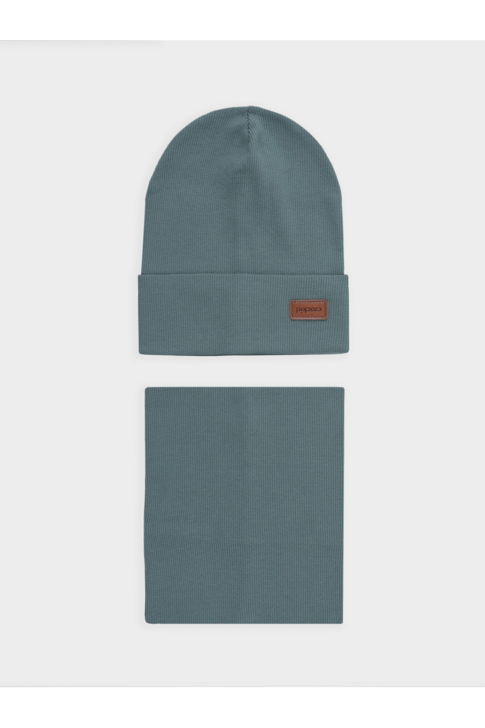 Комплект для мальчика: шапка и снуд. Изготовлен из хлопкового трикотажа в рубчик с добавлением спандекса. Комфортно прилегает, обеспечивая защиту от холода и хороший теплообмен. Изделия хорошо тянутся, после многократных стирок сохраняют цвет и форму.