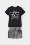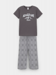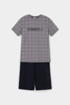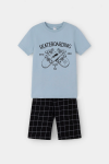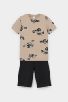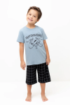 Трикотажная пижама из натурального хлопка. Футболка с короткими рукавами с принтом . У шорт эластичный пояс на резинке. Оригинальная набивка выполнена из стойких, гипоаллергенных текстильных красителей. Пижама сохраняет цвет и форму после многократных стирок. Все трикотажные полотна производятся в соответсвии с нормами Швейцарского сертификата ЭкоТекс.