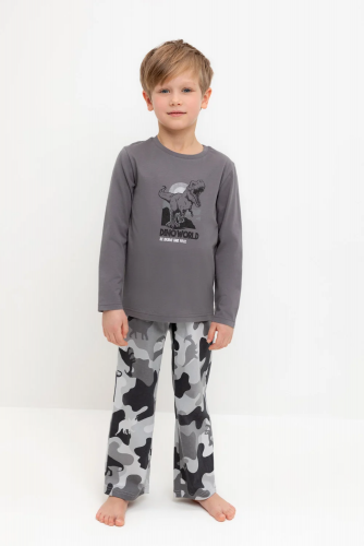 Трикотажная пижама из натурального хлопка. Джемпер с длинными втачными рукавами и брюки с эластичной резинкой в поясе. Мягкие манжеты на рукавах и по низу брюк. Оригинальная набивка и принт выполнены из стойких текстильных гипоаллергенных красителей. Изделие сохраняет цвет и форму после многократных стирок. Все трикотажные полотна производятся в соответсвии с нормами швейцарского сертификата ЭкоТекс.