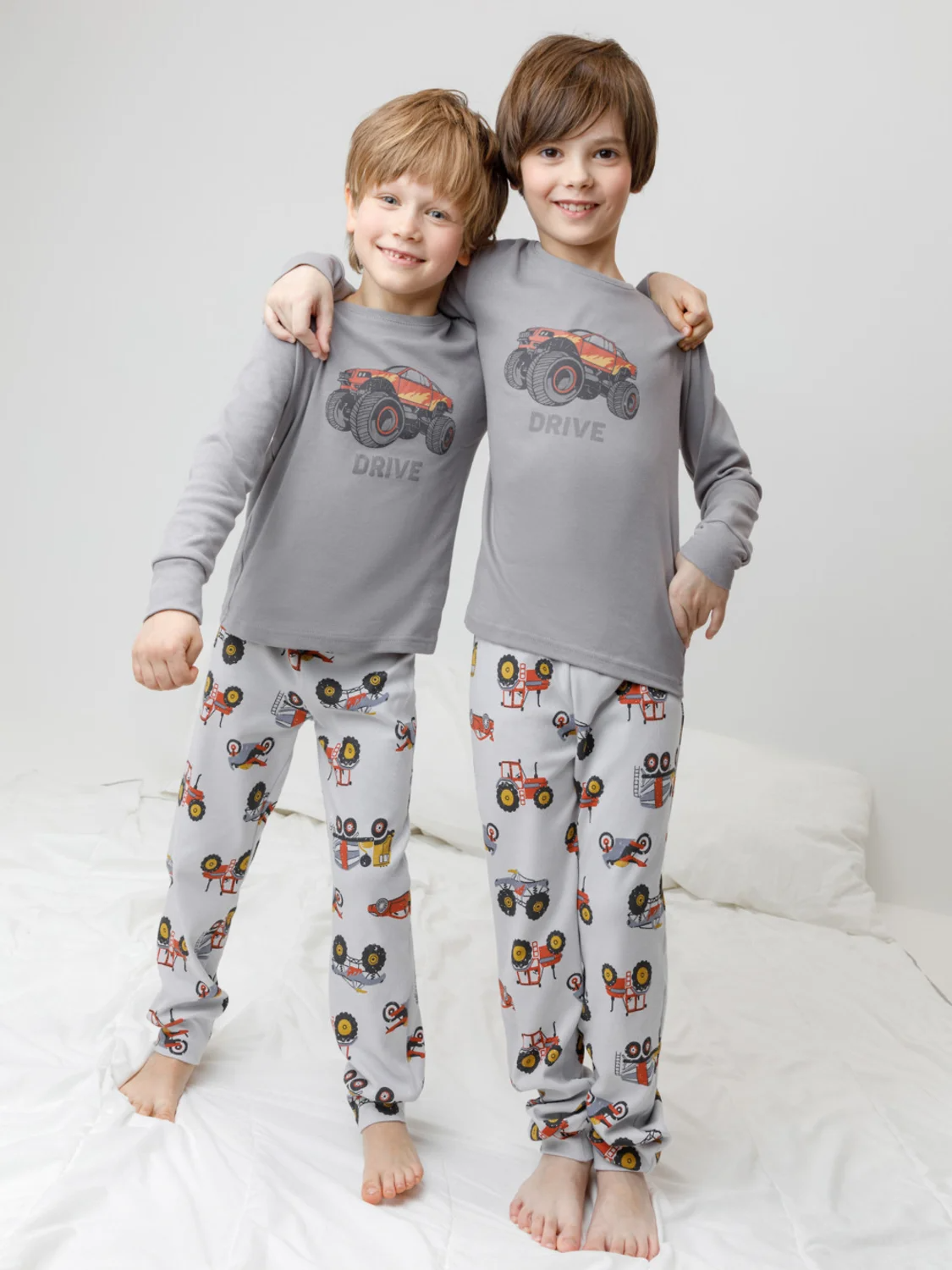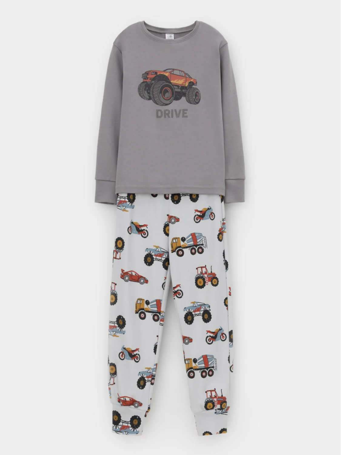 Трикотажная пижама из натурального хлопка. Джемпер с длинными рукавами с эластичными манжетами. У брюк эластичный пояс на резинке. Оригинальная набивка и принт выполнены из стойких, гипоаллергенных текстильных красителей. Пижама сохраняет цвет и форму после многократных стирок. Все трикотажные полотна производятся в соответствии с нормами Швейцарского сертификата ЭкоТекс.