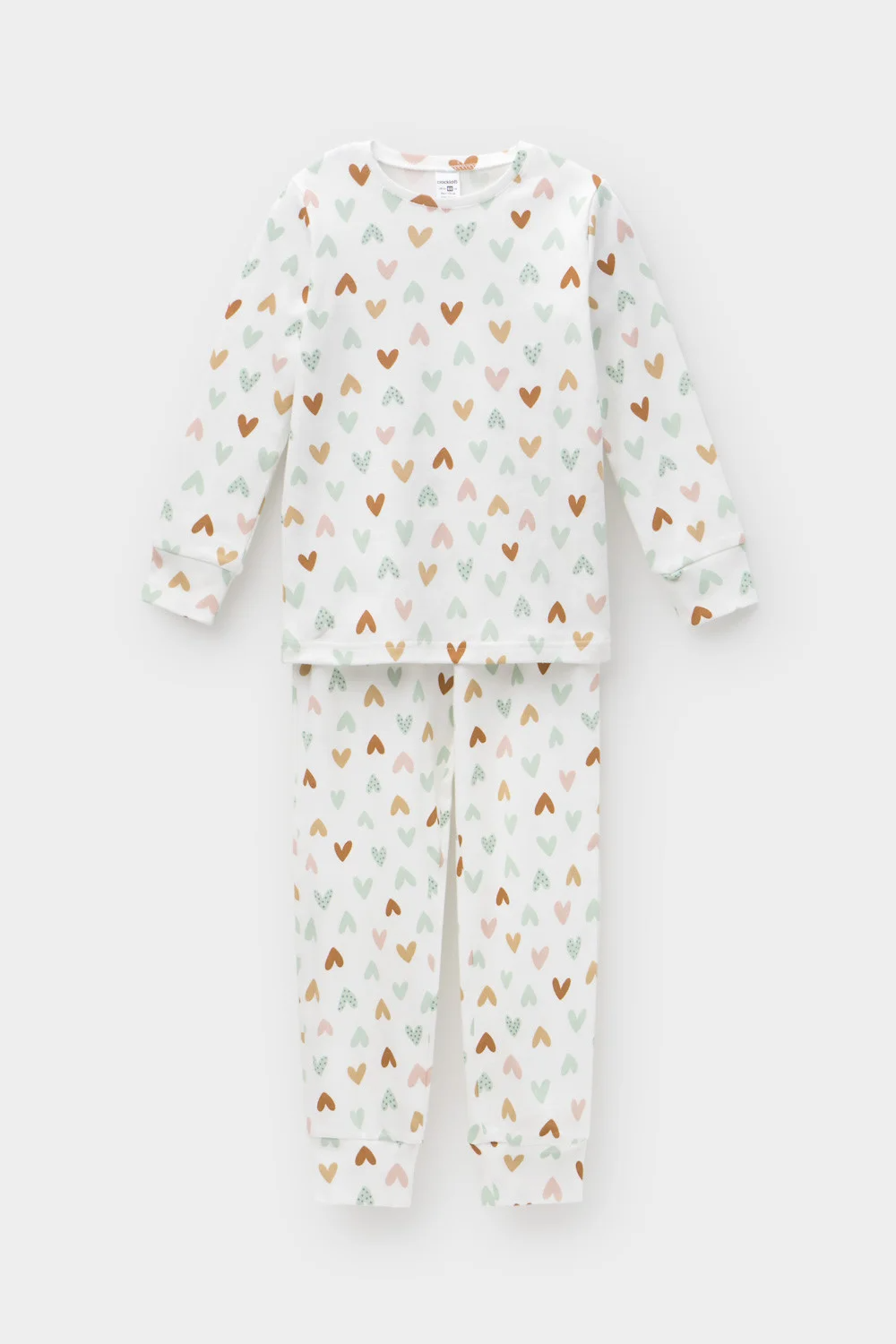 Трикотажная пижама из натурального хлопка. Джемпер с длинными втачными рукавами. У брюк в комплекте мягкий, эластичный пояс на резинке. Оригинальная набивка выполнена из стойких, гипоаллергенных текстильных красителей. Комплект сохраняет цвет и форму после многократных стирок. Все трикотажные полотна производятся в соответсвии с нормами Швейцарского сертификата ЭкоТекс.