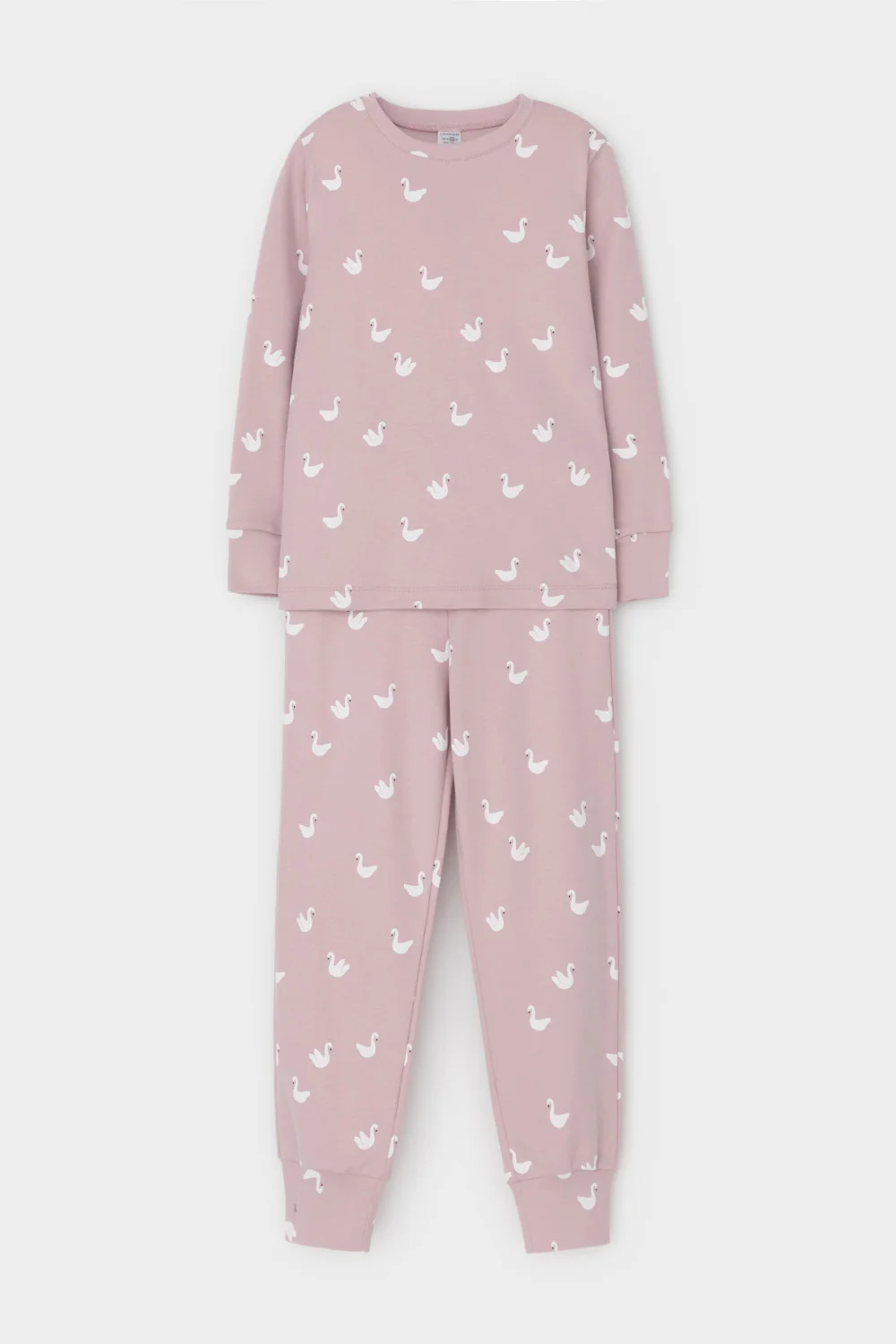 Трикотажная пижама из натурального хлопка. Джемпер с длинными втачными рукавами и брюки с эластичной резинкой в поясе. Мягкие манжеты на рукавах и по низу брюк. Оригинальная набивка выполнена из стойких текстильных гипоаллергенных красителей. Изделие сохраняет цвет и форму после многократных стирок. Все трикотажные полотна производятся в соответствии с нормами швейцарского сертификата ЭкоТекс.