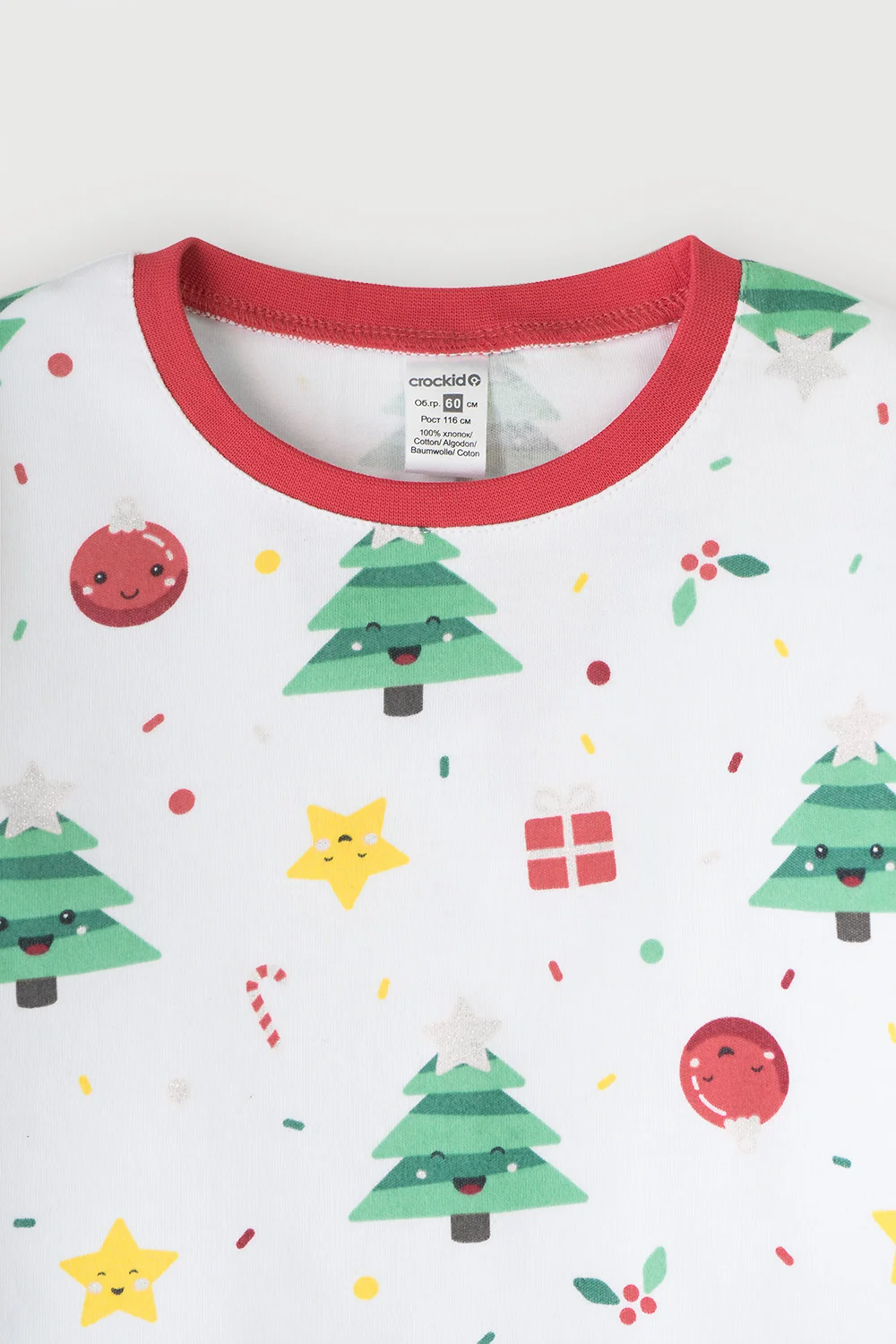 CROCKID Пижама К 1552 веселые елочки на белом