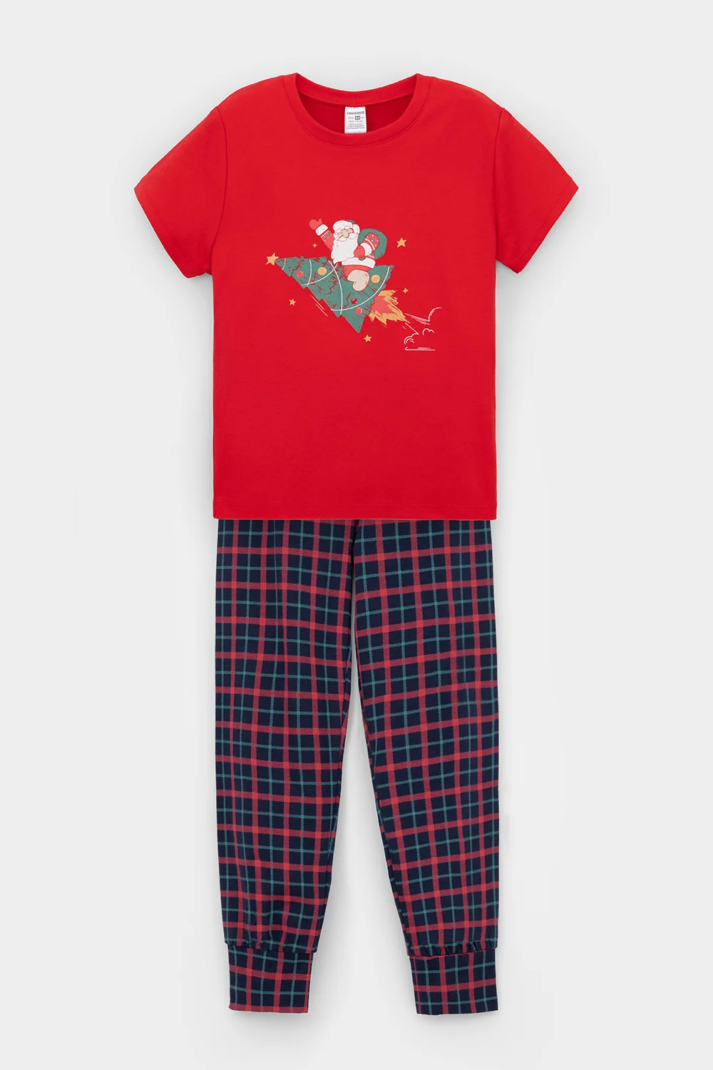 CROCKID Пижама К 1554 насыщенно-красный, клетка