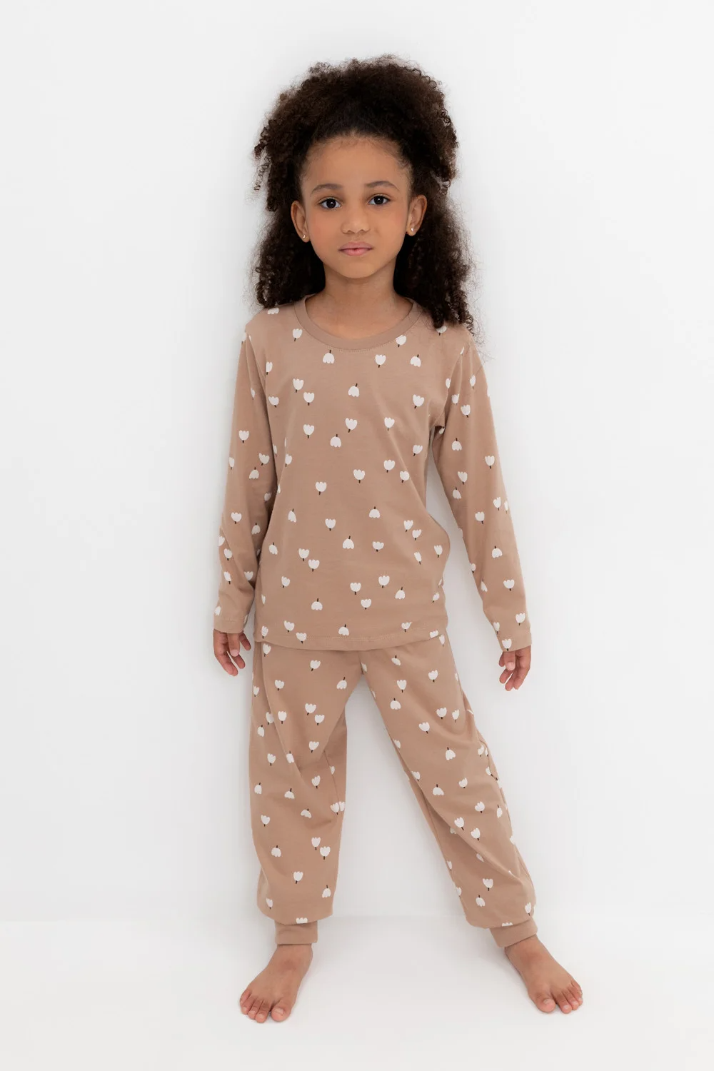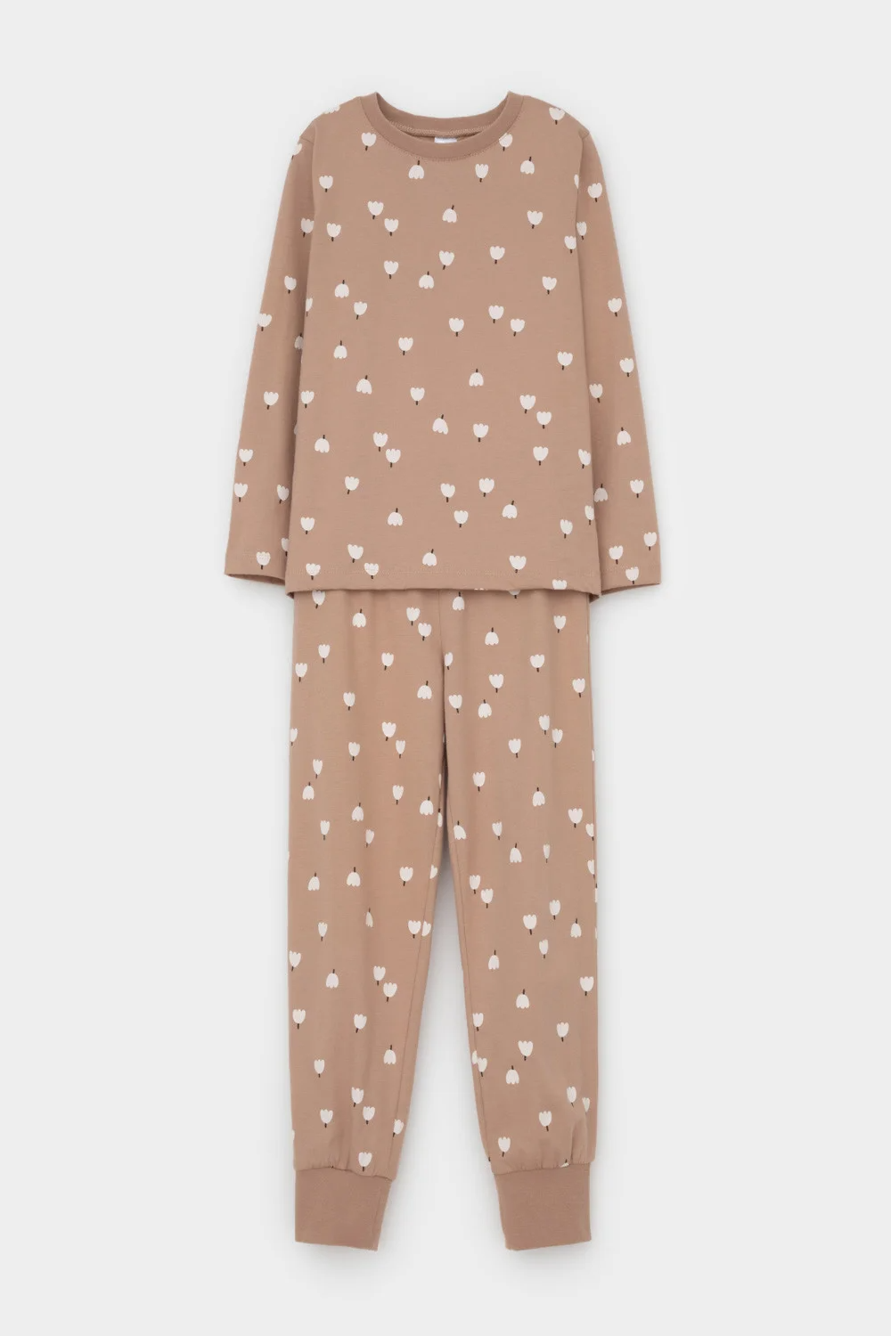 Трикотажная пижама из натурального хлопка. Джемпер с длинными втачными рукавами. У брюк в комплекте мягкий, эластичный пояс на резинке. Оригинальная набивка выполнена из стойких, гипоаллергенных текстильных красителей. Комплект сохраняет цвет и форму после многократных стирок. Все трикотажные полотна производятся в соответсвии с нормами Швейцарского сертификата ЭкоТекс.