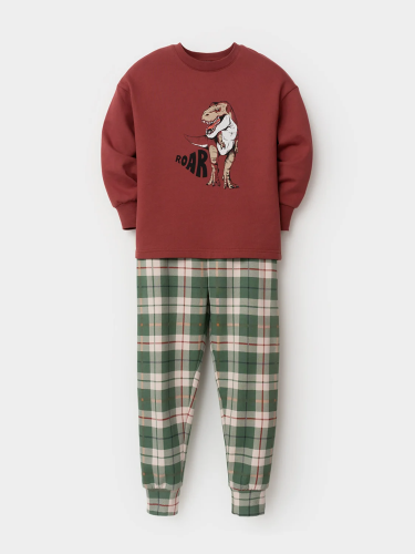 Тёплая пижама с начёсом из натурального хлопка. Джемпер с длинными спущенными рукавами и брюки с эластичной резинкой в поясе. Мягкие манжеты на рукавах и по низу брюк. Оригинальные набивка и принт выполнены из стойких гипоаллергенных текстильных красителей. Изделие сохраняет цвет и форму после многократных стирок. Все трикотажные полотна производятся в соответствии с нормами швейцарского сертификата ЭкоТекс.