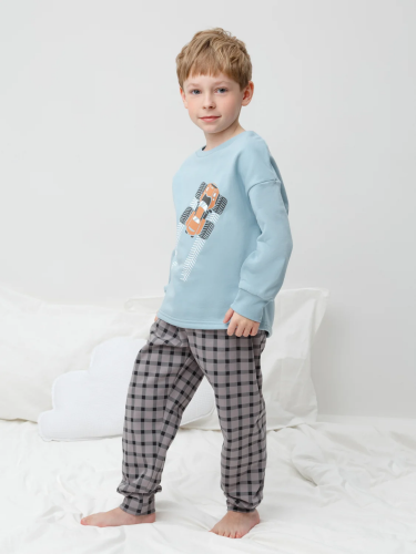 Трикотажная пижама с начёсом из натурального хлопка. Джемпер с длинными спущенными рукавами и брюки с эластичной резинкой в поясе. Мягкие манжеты на рукавах и по низу брюк. Оригинальные набивка и принт выполнены из стойких гипоаллергенных текстильных гипоаллергенных красителей. Изделие сохраняет цвет и форму после многократных стирок. Все трикотажные полотна производятся в соответсвии с нормами швейцарского сертификата ЭкоТекс.